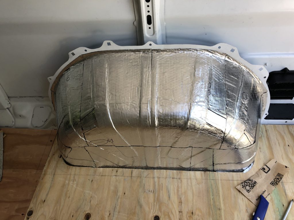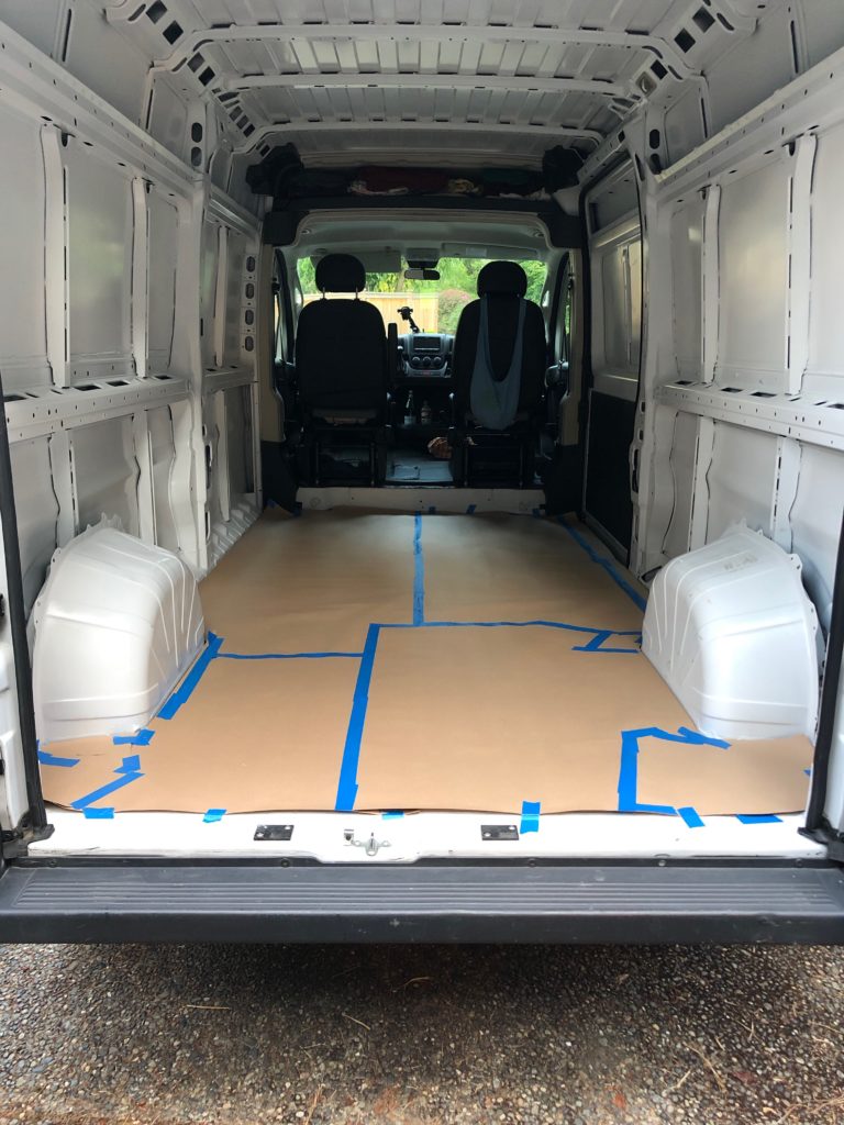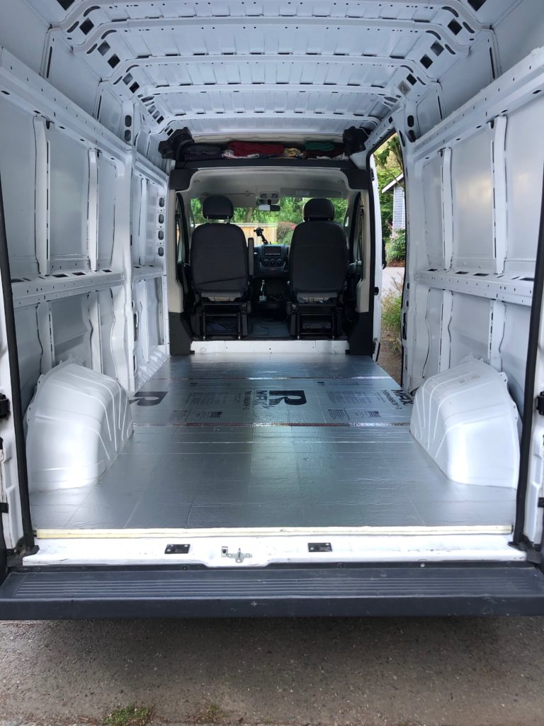 Install the rigid foam insulation on the van floor